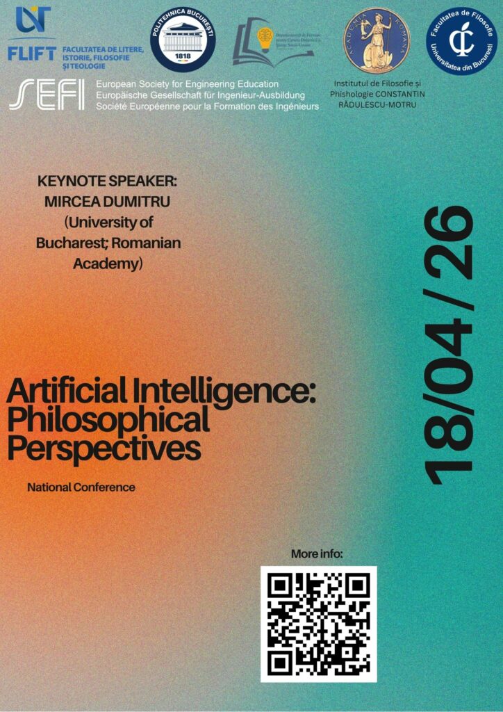 The national conference “Artificial Intelligence: Philosophical Perspectives” took place on April 18, in Bucharest, Romania in a hybrid format. The event was hosted by the National University of Science and Technology Politehnica Bucharest, the main organiser of the event, with SEFI as a partner alongside the Institute of Philosophy and Psychology ‘Constantin Rădulescu-Motru’ of the Romanian Academy, Faculty of Letters, History, Philosophy and Theology of the West University of Timișoara, and the Faculty of Philosophy from the University of Bucharest.